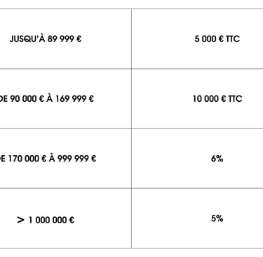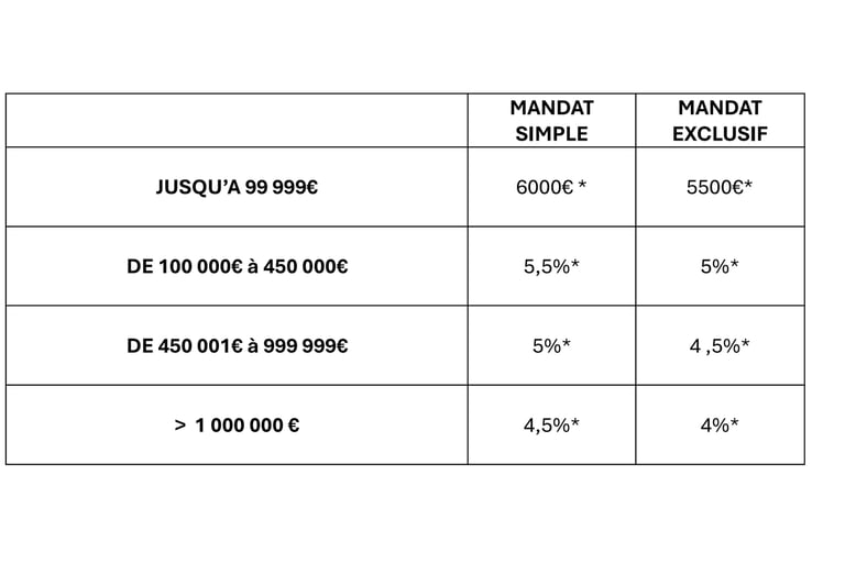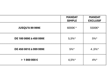 *LES HONORAIRES REPRÉSENTENT LE POURCENTAGE MAXIMUM APPLICABLE À NOS PRESTATIONS ET INCLUENT LA TVA À 20 %